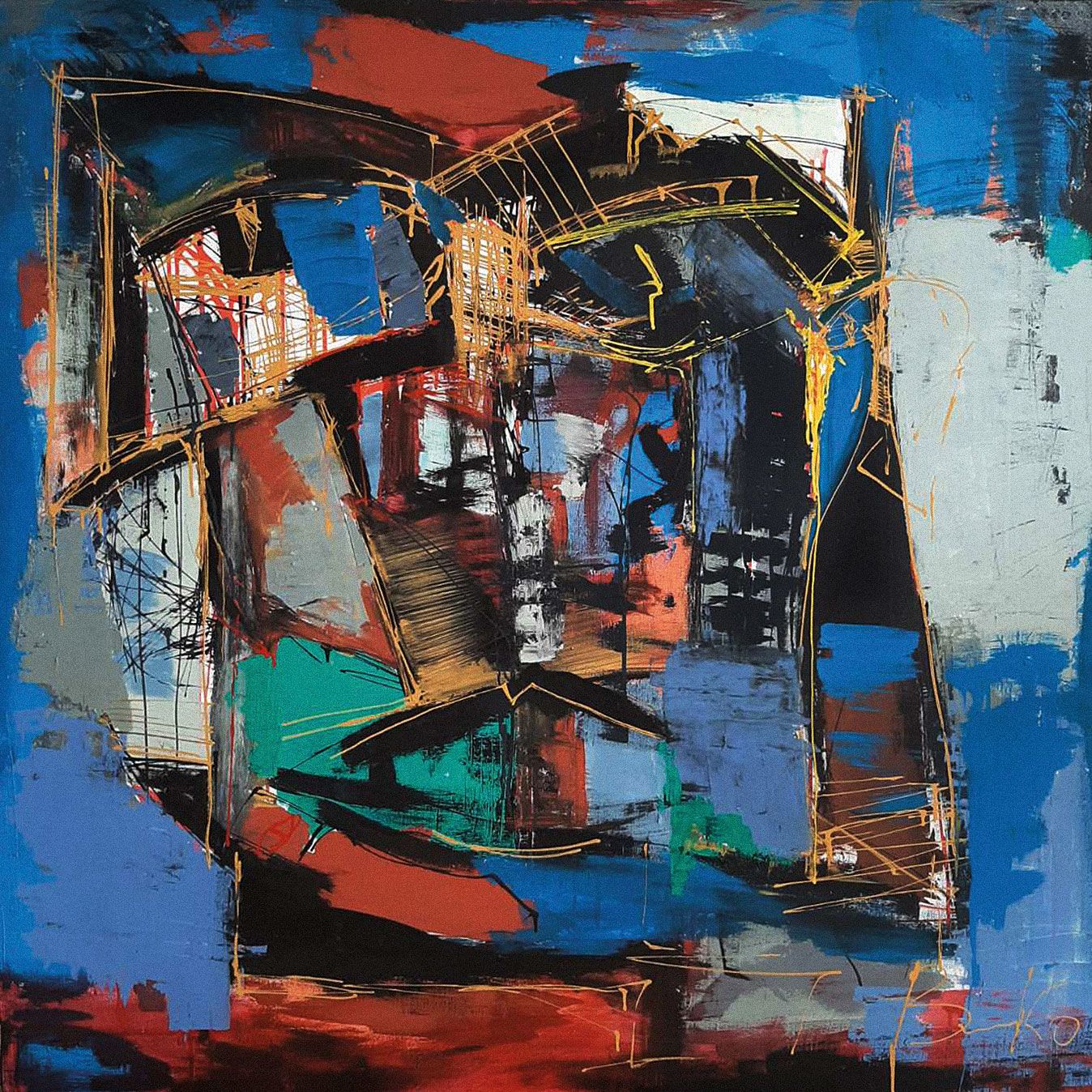 Картините на Владко Балев, които са подредени в столичната галерия „Сердика“ са различни по големина платна в квадратна форма изпълнени с техниката акрилна живопис.